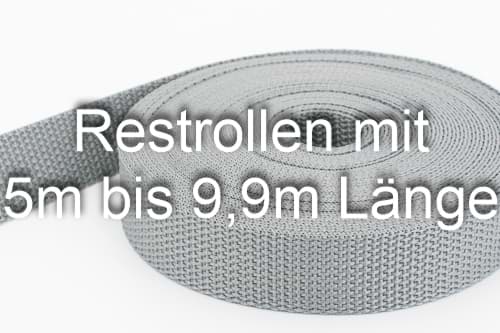 Restpostenbox 25mm breites PP-Gurtband 1,2mm stark, 25m - grau (UV)